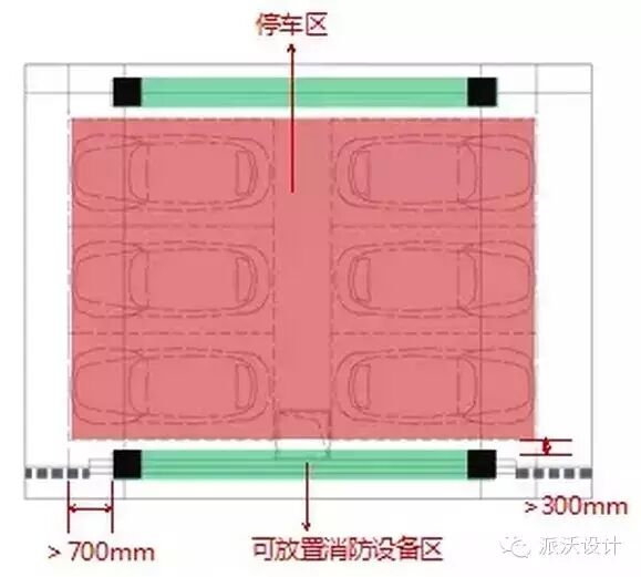 车头应超出柱子, 超出距离控制700mm以上,保证出车方便。同时,停车线外不允许有任何突入车位线以内设备。