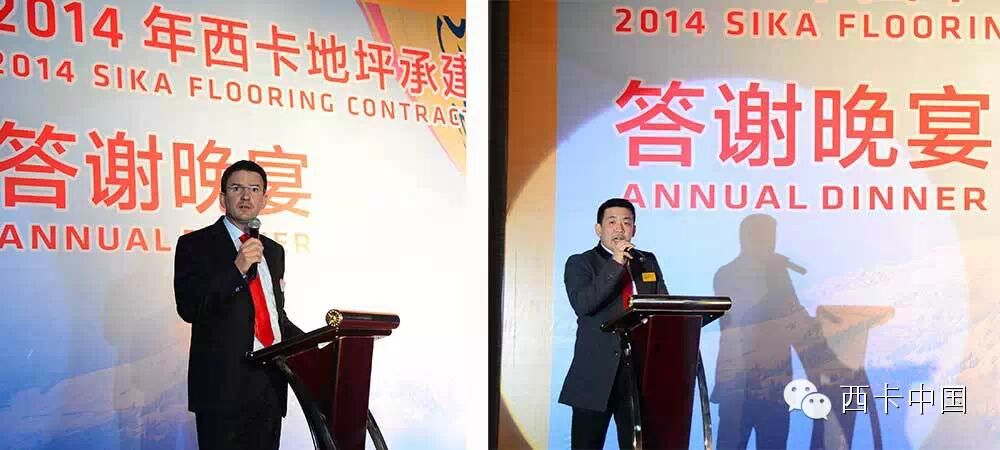 2014年西卡地坪业务取得了骄人的成绩,这离不开与承建商的通力合作。正如西卡中国总裁穆善和(下左)和副总裁周宏吉(下右)的讲话中提到的: